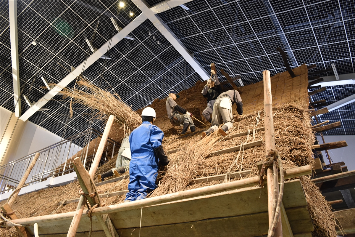 この道の駅では合掌ミュージアムという施設が併設されており、ここでは合掌造りの仕組みや歴史、茅葺の材料などがパネルで展示されたり再現されている。